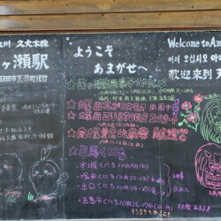 JR天ケ瀬駅の黒板が10月のイベント情報でいっぱいに。 10月11日(土)と12日(日)は献燈祭。 12日(日)は塚田花畑でコンサート。 10月下旬は五馬くにち。杖楽があるのは五馬市だけになります。 10月26日(日)は … …続きを読む