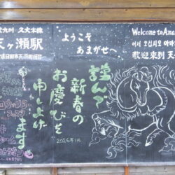 天ヶ瀬駅の1月の黒板です。 新年を迎え、凛々しい馬の絵が描かれていますよ~ 1月イベント情報♪ 〇出口ウインターフェスタ【1月11日(日)まで】 点灯時間:日没から21時頃 場 所:出口コミュニティセンター(旧出口小学 … …続きを読む