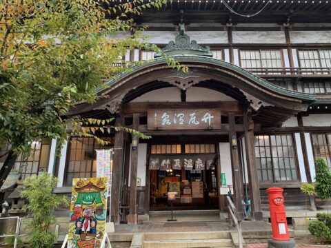駅を出ると手湯が。駅の横には観光案内所があり、そこで地図をもらって駅近くを散策。気になっていた竹瓦温泉へ。