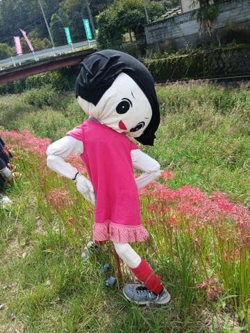 案山子会場です。少し離れたとこにもう1つ川沿いの会場があります。川沿いには彼岸花も咲いていましたが・・・今はもう・・
