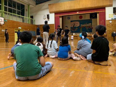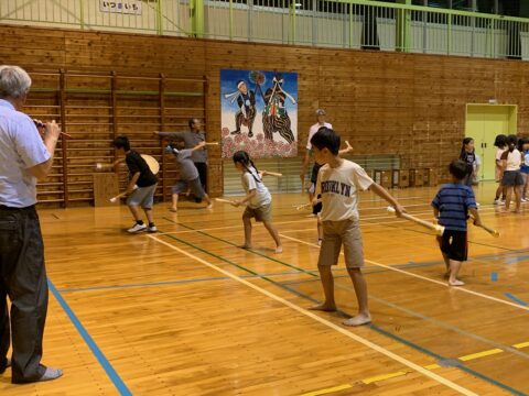 大人が披露する杖楽を小さいお子さんたちが真剣なまなざしで見学する後姿に熱いものを感じました。長く続いていってほしいお祭りです。