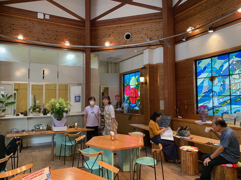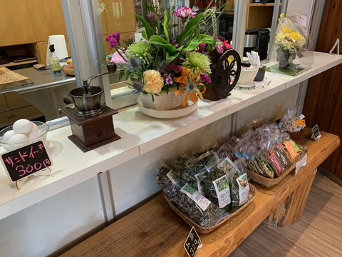 館内でコーヒーや焼き菓子、サンドイッチなど召し上がることもできますし、テイクアウトも。他にもお菓子や野菜も販売。