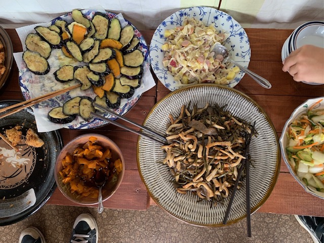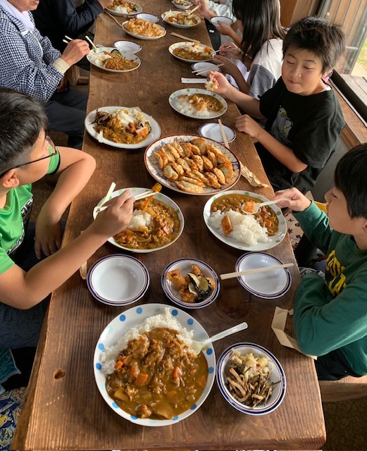 そして地元の食材や新米、収穫したサツマイモを使ったお昼ご飯。