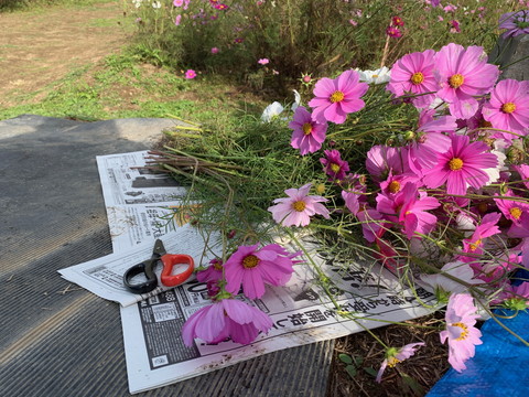 お問合せを多くいただいています、塚田花畑のコスモス。今期のコスモスは今日が最終日。