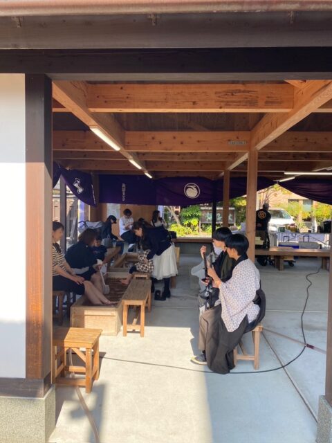 日田市豆田地区で開催中の天領まつり。天ヶ瀬温泉からは足湯が出張中。