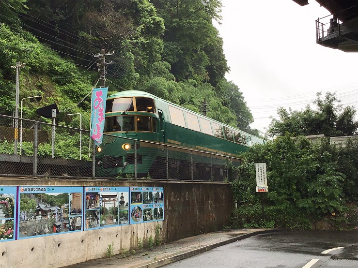 JR天ケ瀬駅では下りのゆふいんの森号が天ケ瀬駅を到着・出発の時にあづきさんが手を振ってお迎え。