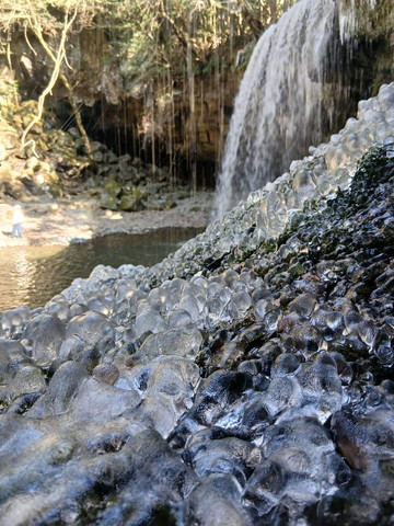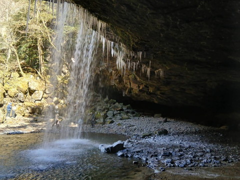 滝の裏にも行くことが出来ます。今日は寒くて20mのカーテンも半分が凍ってて10m程に。寒いのです。次と次の写真みてみて。