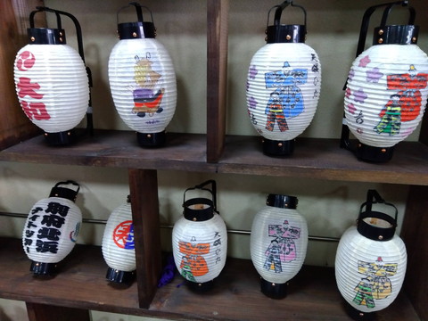 入口には、色とりどりのかわいいてまりや提灯が下がっています。