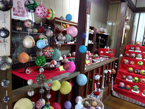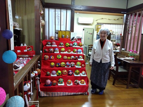 すぐ隣では、奥様が作ったてまりの作品の数々が展示されています。