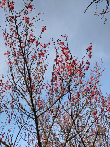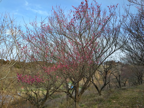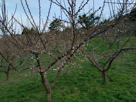 大山町ふるや台梅園の開花状況です。まだほとんどの木が蕾の状態です。