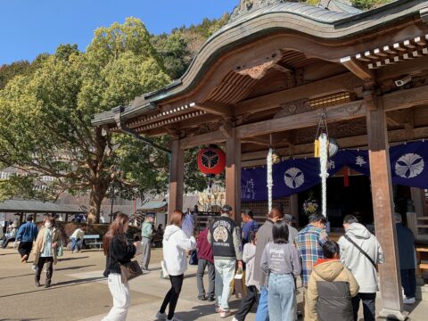 三連休、お天気にも恵まれて、お出かけや宿泊で天瀬町を訪れる方もたくさん。高塚愛宕地蔵尊も、拝殿前は参拝のお客様の列ができていました。