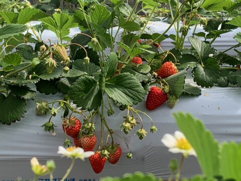 湯浅農園のいちご狩りも小さいお子さんがいるご家族に大人気で、ハウス内でいちご狩り、