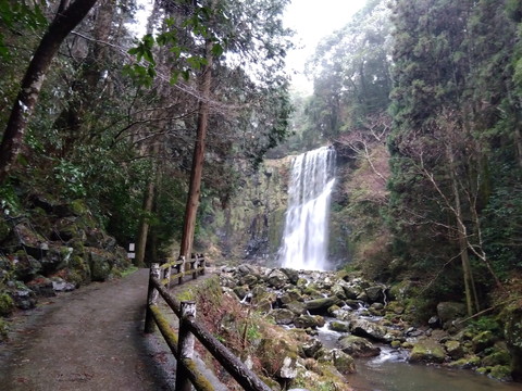 今日はずっと雨。 雨が少なかったので恵みの雨ですね。 天ヶ瀬駅から歩いて10分もかからない場所にある「桜滝」。 桜の時期は、滝へ続く遊歩道から桜の花が見えますよ。 近くにバスや乗用車が停められる駐車場があり、駐車場からも歩いて5分程。 自然豊かな天瀬です。
