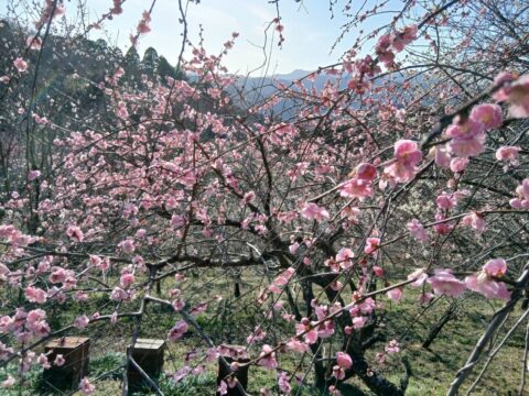 日田市大山町で開催中の「おおやま梅まつり」。2月28日(土)の梅の状況です。