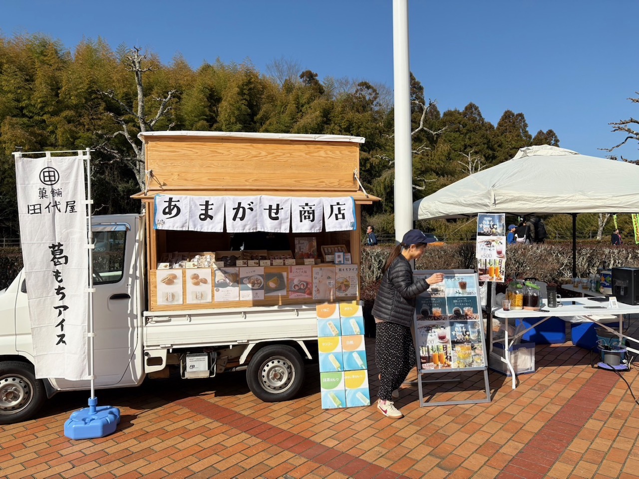 スタート・ゴール地点の日田市陸上競技場では、天ヶ瀬温泉足湯、そしてあまがせ商店も出店中!