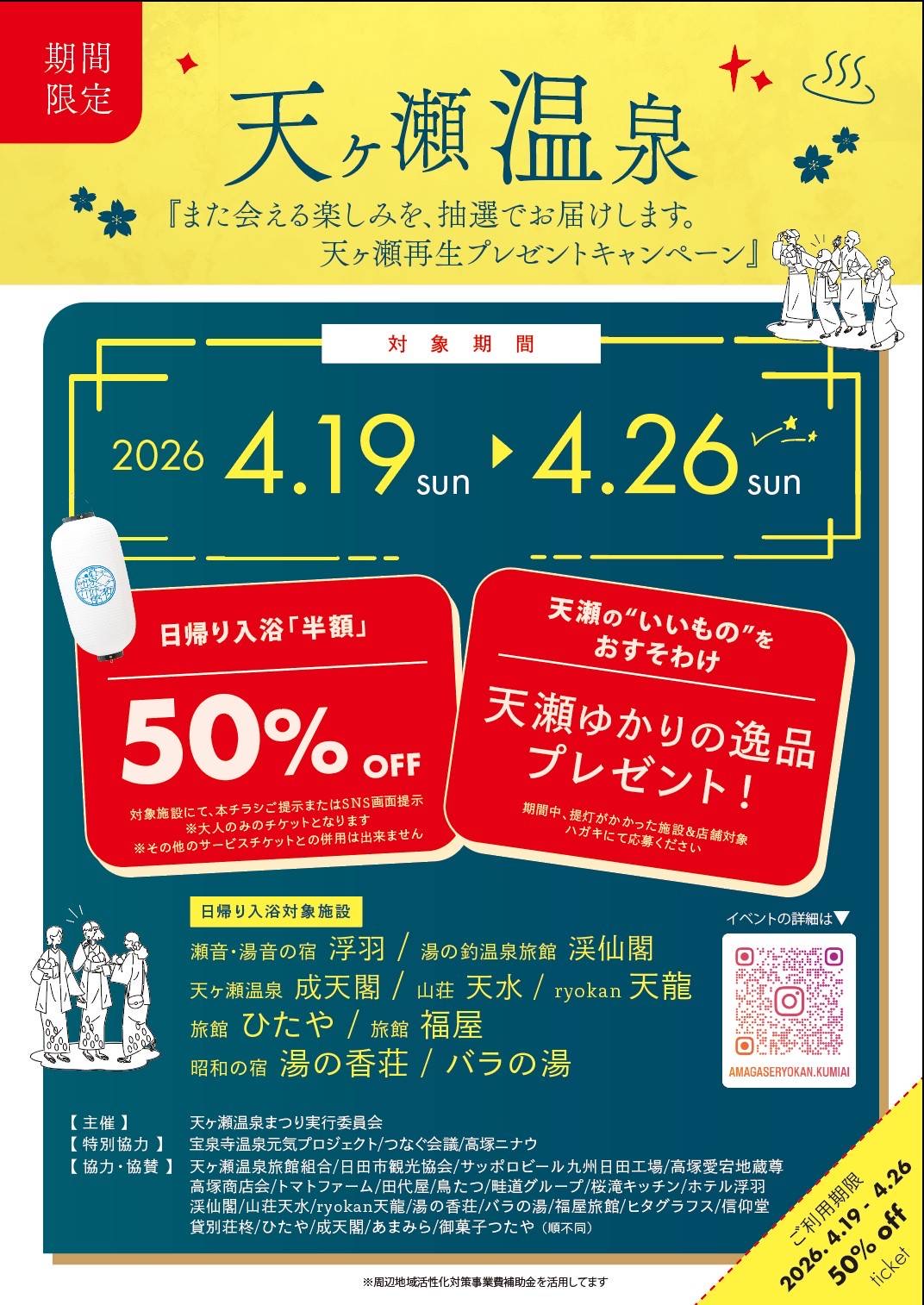 また、4月19日(日)~26日(日)は対象施設での日帰り入浴が半額に。