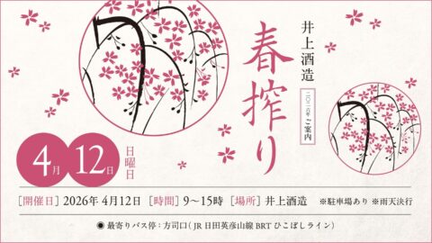 明日、4月12日(日)は日田市大鶴にある井上酒造さんで「春搾り」。