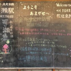 4月の天ケ瀬駅の黒板。4月のイベント情報を案内。 4月19日(日)素人芝居劇団「天ヶ瀬座」のお芝居。 4月20日(月)高塚愛宕地蔵尊で弘法大師祭。※福引のお接待(数に限りあり) 4月26日(日)RE:amagase.温泉 … …続きを読む