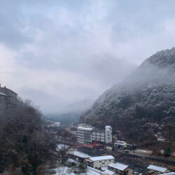 今日の朝、天ヶ瀬温泉街は雪がちらほら舞って、屋根にも雪がうっすらと積もっていました。道路に積雪はありません。(午前9時現在) お出かけの際は、天気予報・交通情報をご確認の上、お気を付けください。 ※交通情報は今後変わる可 … …続きを読む