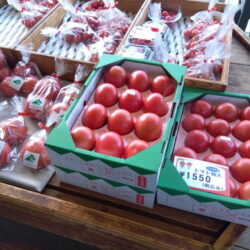 トマト狩りが始まっているトマトファームさん。 大玉のトマトが取れ始めているそうです。 売店にも並んでいます。 ミニトマトは試食ができますので味比べをしてみてください♪ 干し柿や干し大根、キウイや唐辛子なども販売していまし … …続きを読む