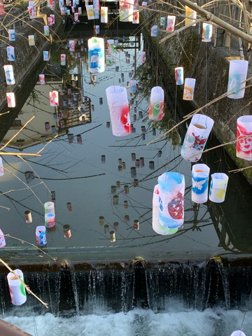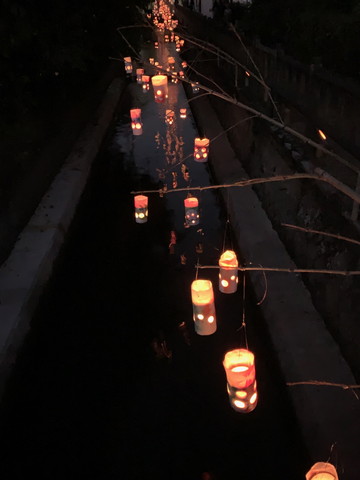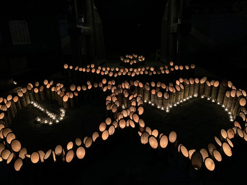 昨日は地区の方々が竹灯籠を設置されたり、点灯したり。
