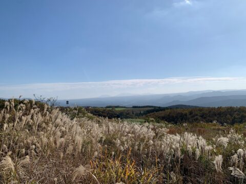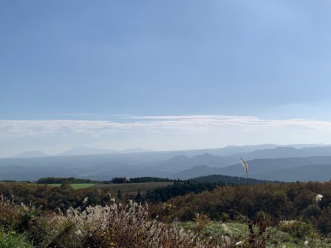 秋の亀石峠は、ススキもあり、この日は霞んでいましたが、それでも遠くに阿蘇方面を眺めることができました。