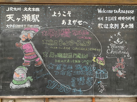 天ケ瀬駅の黒板が12月のイベント情報になりました。