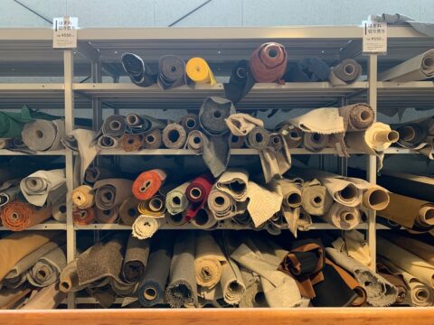 ソファの製造工程で発生する余り生地(ハギレ)も販売。品質の高い生地なのにいいのでしょうかというお値段で購入できます!