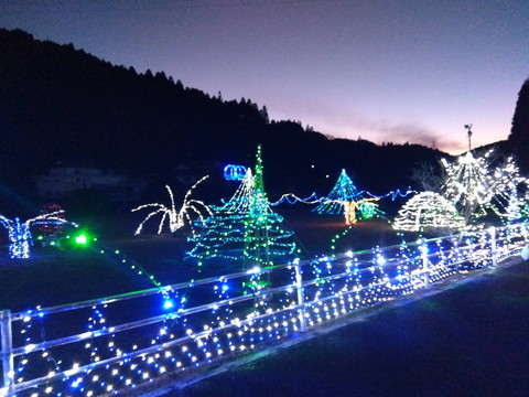 天瀬町出口で開催中の「いでぐちウインターフェスタ2025」。 出口コミュニティセンター(旧出口小学校)のグラウンドにイルミネーションが広範囲で飾られています。 1月11日(日)が最終日です。 寒い日が続きますが、色とりどりのイルミネーションをお楽しみいただければと思います。