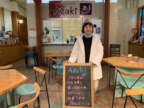 天ケ瀬駅に併設された、天の国プラザ内にある「あづき」さん。列車待ちのお客様や地元の方々がカフェや食事で一息つけるお店ですが、2月はお休みです。