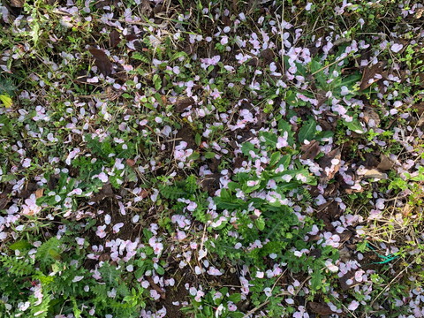 昨日の雨と風で花びらがだいぶ落ちてきていますが、今朝訪れたところ、満開と言っていい状態でした。