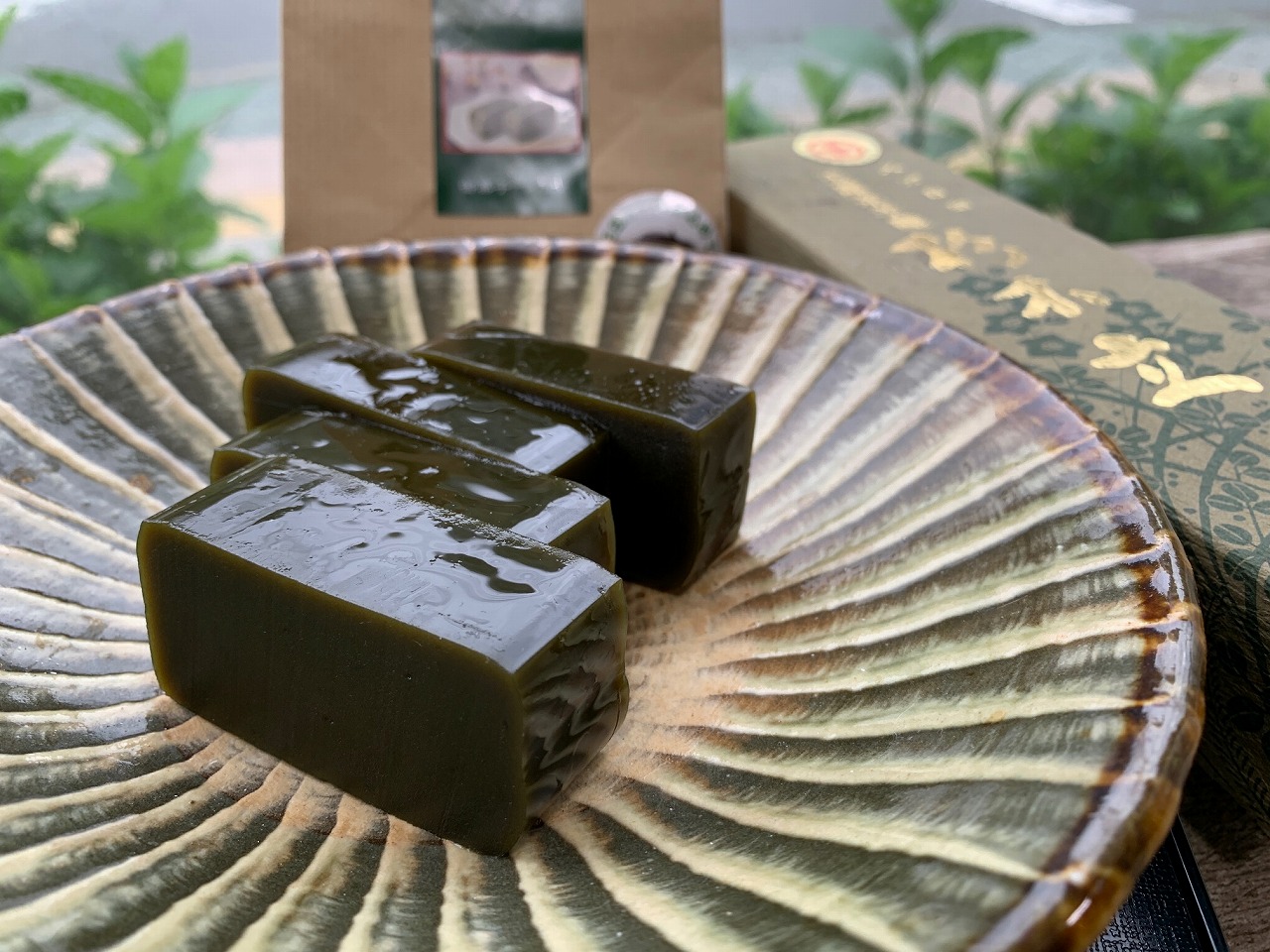 玉露羊羹。しつこくない、あっさりとした甘さの羊羹です。食べやすいので、ついつい食べ過ぎてしまいます。